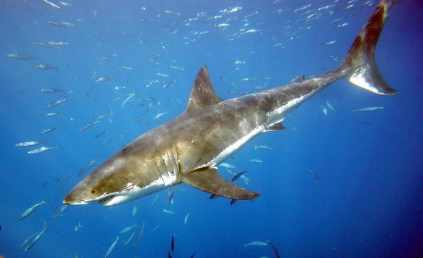 Environmental groups in the U.S. recently petitioned the federal government to list the great white as endangered. Oceana, an international group focused on protecting the world’s oceans, estimates there are only about 340 mature great whites remaining in the northeast Pacific and perhaps less than 100 breeding females. Great white sharks can live about 30 years and reach a size of 6,600 pounds and a length of 20 feet.
