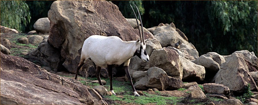 This antelope of the Arabian Peninsula and Sinai Desert became extinct in the wild by the late 1960s, mostly due to hunters with high-powered rifles. To save the species, nine Arabian oryx from private collections in Oman, Kuwait, and Saudi Arabia, as well as from the London Zoo, were moved to the Phoenix Zoo in Arizona. A second breeding group of three oryx, from a zoo in Saudi Arabia, was started at the Los Angeles Zoo, and in the 1970s animals from both of these herds were sent to the San Diego Safari Park. As of 2010, 342 Arabian oryx have been born at the Safari Park, with many returned to Oman and Jordan for reintroduction in their native range. (Photo: San Diego Zoo Safari Park)