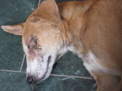 The Animal Rahat team discovered this dog languishing with an eye injury. According to local villagers, the injury happened during a scrap with another “street dog.”
