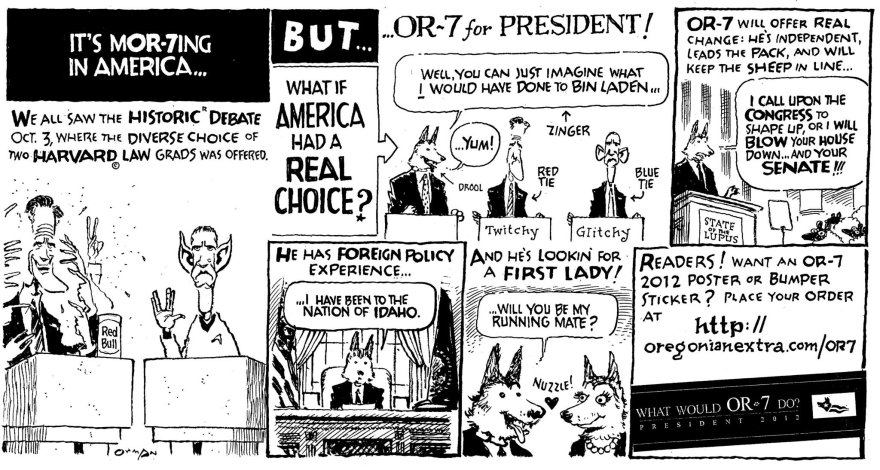 My favorite wolf Posted on October 7, 2012 Jack Ohman, The Oregonian. Share this: Click to share on X (Opens in new window) X Click to share on LinkedIn (Opens in new window) LinkedIn Click to share on Facebook (Opens in new window) Facebook Click to email a link to a friend (Opens in new window) Email Click to share on Reddit (Opens in new window) Reddit More Click to share on Pinterest (Opens in new window) Pinterest Click to share on Tumblr (Opens in new window) Tumblr Like Loading... Related