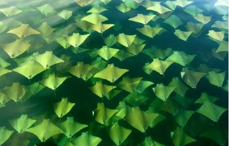 Twice a year in the Gulf of Mexico Golden Cow-nose stingrays swim from the Yucatan Peninsula in Mexico to Florida in the spring and back in the fall.
