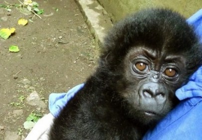 9 month old Isang, brought to Virunga National Park Senkwekwe Orphan Gorilla Center.