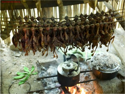 - The captured birds are kept alive in mosquito nets or cane baskets so they can be exported alive to the customers and markets. From cane baskets, the birds are transferred to poles for carrying into villages and towns. There they are killed, plucked and smoked for sale.