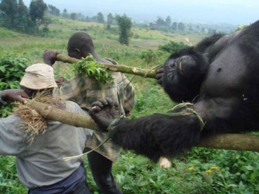 Senkwekwe, the Silverback, is brought out of the forest to be transported to Bukima.. We were all in shock.