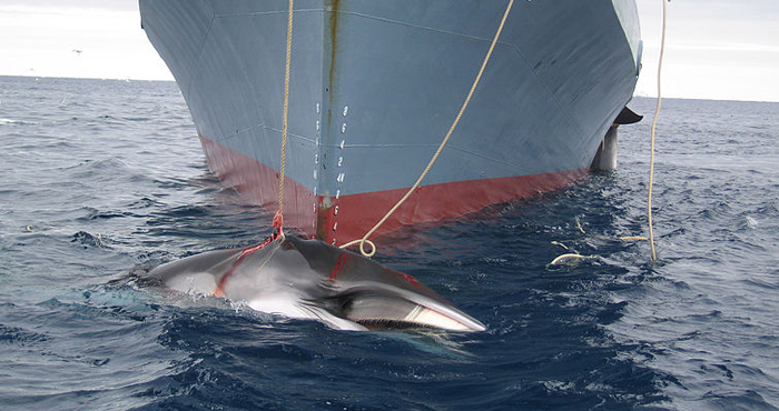 “So…it’s a pirate industry. The International Whaling Commission has recognized that the scientific research claims are dubious and has imposed a moratorium on whaling, an international moratorium, and the Institute of Cetacean Research is violating that moratorium. In other words, they are today in violation, by sending these ships out. The two harpoon boats and their factory processing ship in the Southern Ocean, they are violating not only Australian law—the Australians and Chileans have chased them out of their territorial waters and forbidden them from coming into those waters and their Antarctic waters—they are in violation of international law.