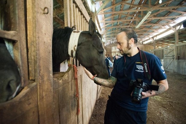 Rescuer washes down the legs of Tennessee Walking Horse to ease the pain of burning chemicals. (Photo: Kathy Milani/HSUS)