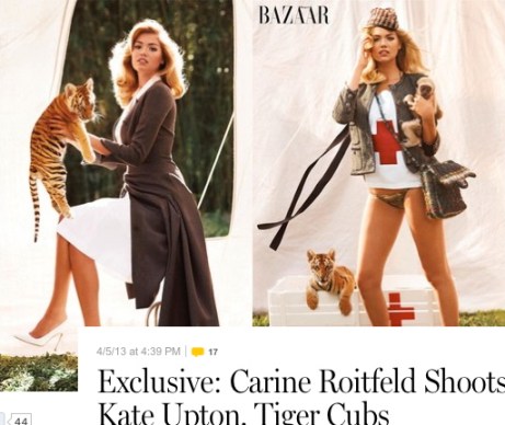 You can dress this kind of stuff up with super models and fancy photo shoots but it all boils down to a zero sum game for the animals. There is really no difference between how Ms. Roitfeld used Bently the chimp, and Tony the Truckstop Tiger in his concrete cage in Louisiana,