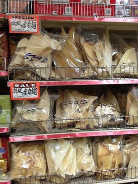 Shark fins on sale at $600 per pound in the Chinatown section of Los Angeles, California. As of today they are illegal. (Photo: Louis Sahagun/MCT)