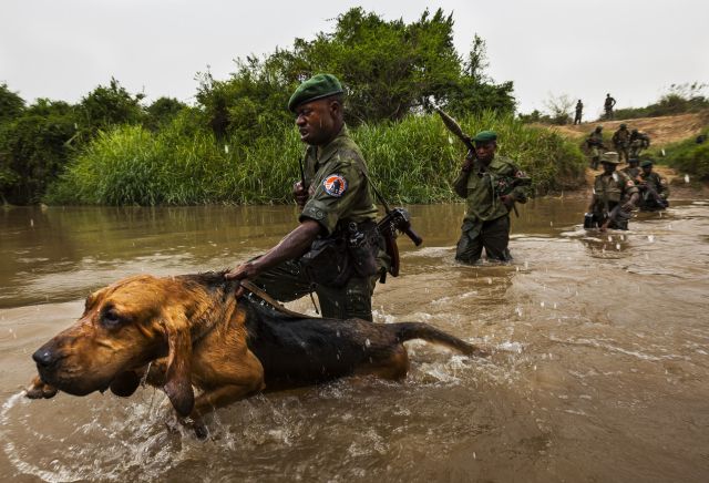 Rangers from Virunga National Park’s canine unit in search of elephant poachers. (Photo: Virunga Nat Park)
