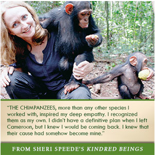 Small world, I recently attended a reading by author Sheri Speede who has just published the book Kindred Beings, an account of how she started the Sanaga-Yong Chimpanzee Rescue Center in Cameroon for IDA Africa. Speede, it turns out, is the woman in the photo with Dorothy.