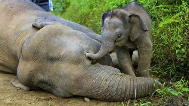 Last January, rangers of the Gunung Rara Forest Reserve in Northeastern Borneo came upon a baby pygmy elephant, nudging his dead mother, trying to get her to rise and feed him. Four other members of his herd lay on the ground nearby.