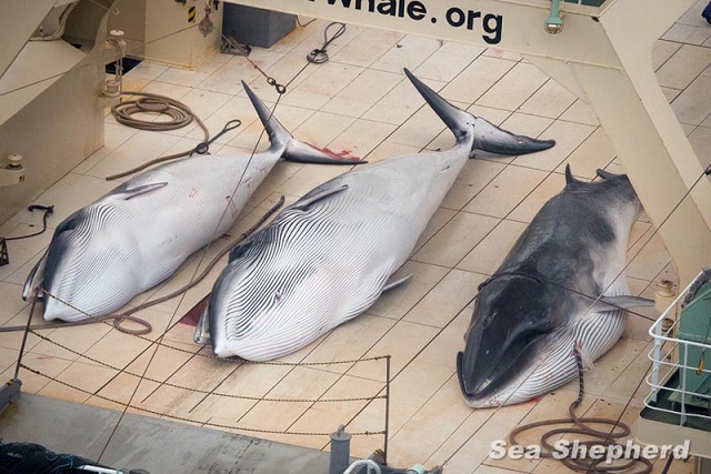 Minke whales on Japanese factory ship Nisshin Maru. (Photo: Sea Shepherd Australia)