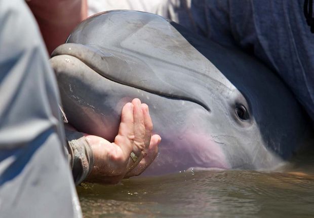Oiled dolphin, summer 2010, in Barataria Bay, La. (Photo: Louisiana Department of Wildlife and Fisheries/Mandy Tumlin)