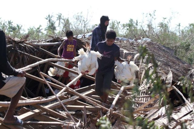 Poultry farmers have sifted through the debris to find live chickens they can relocate after their crops were destroyed in northern Cebu, Philippines. (Photo: WSPA/C. Baldicantos)