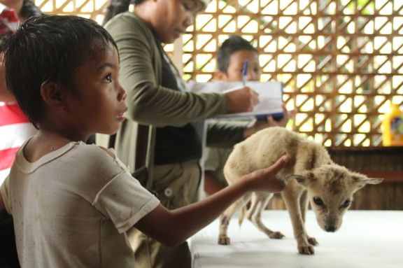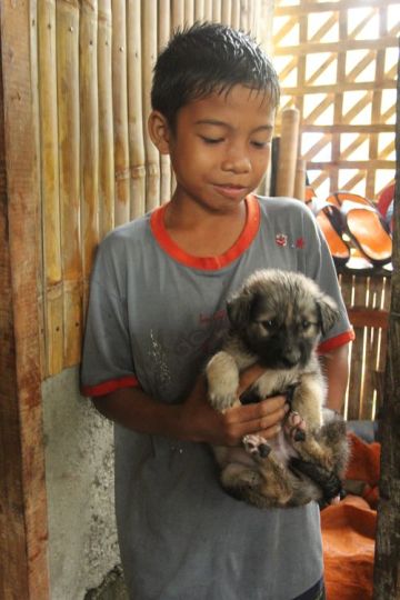 Two young boys from the same village Jomar Nalagan 10, and MarJo Nalagan Jr. 8, brought their puppies for treatment,