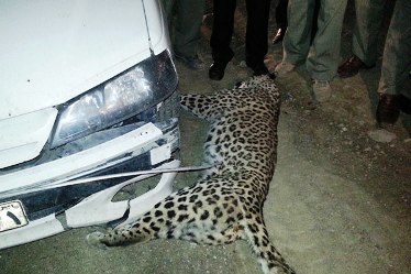 Leopard killed in an automobile accident in Sefidkooh protected area near Khorramabad. (Photo: Mehr News Agency)