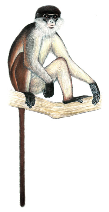 Niger Delta red colobus. (Illustration by: Stephen Nash)